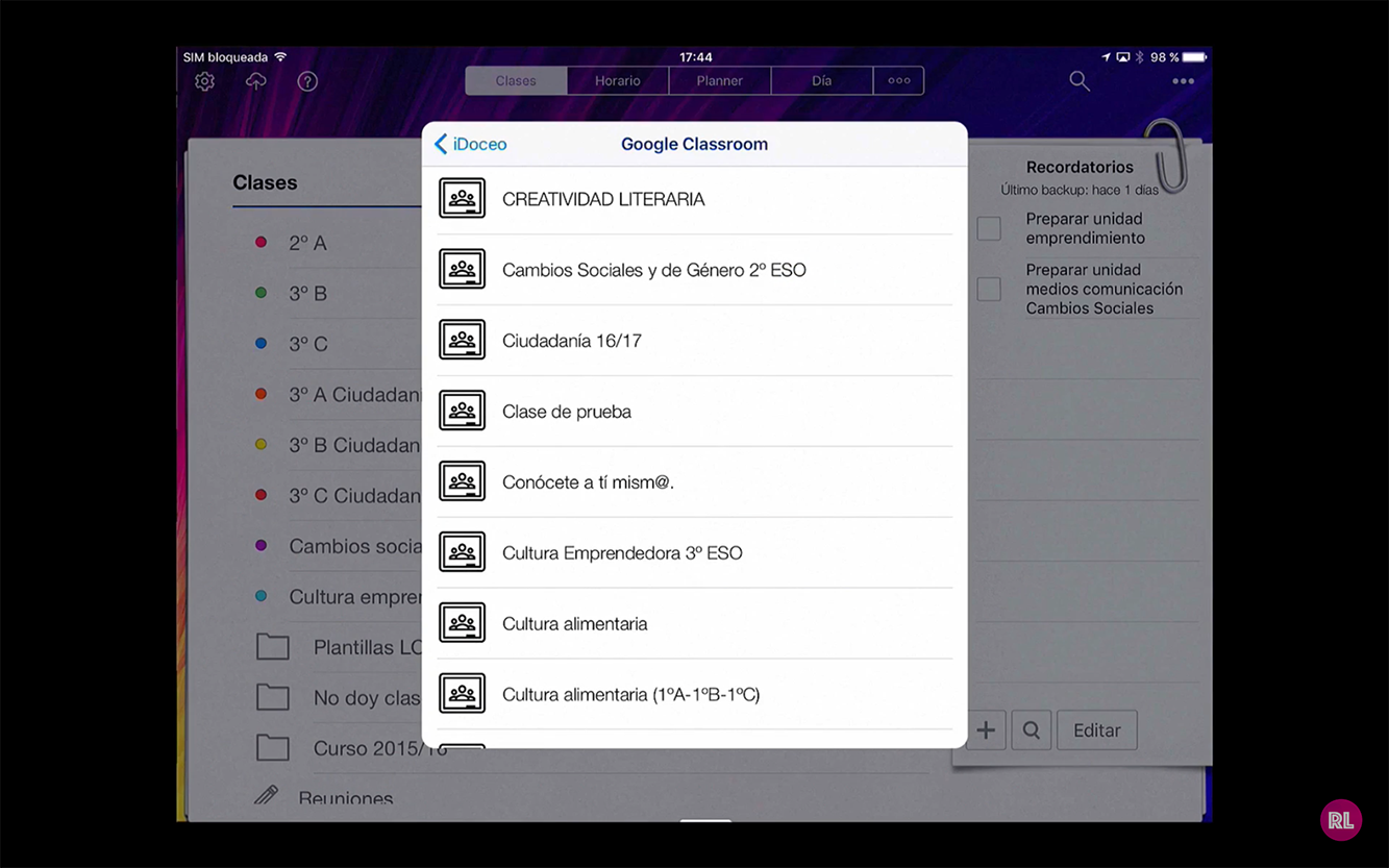 Desde hace tres años en el IES Cartima tenemos dominio de Google Apps, ahora llamado Google Suite, y la integración de cuentas de Google para el alumnado y el profesorado y el uso de Google Classroom es primordial en nuestro centro. Cada vez más aplicaciones se suman a sincronizar con Google Classroom, y un a de ellas más es iDoceo, que en su nueva versión 4.5 tiene la función de poder sincronizar tu cuaderno del profesor con tu cuenta de Google Classroom y así poder integrar el alumnado que tengas en tu cuaderno.