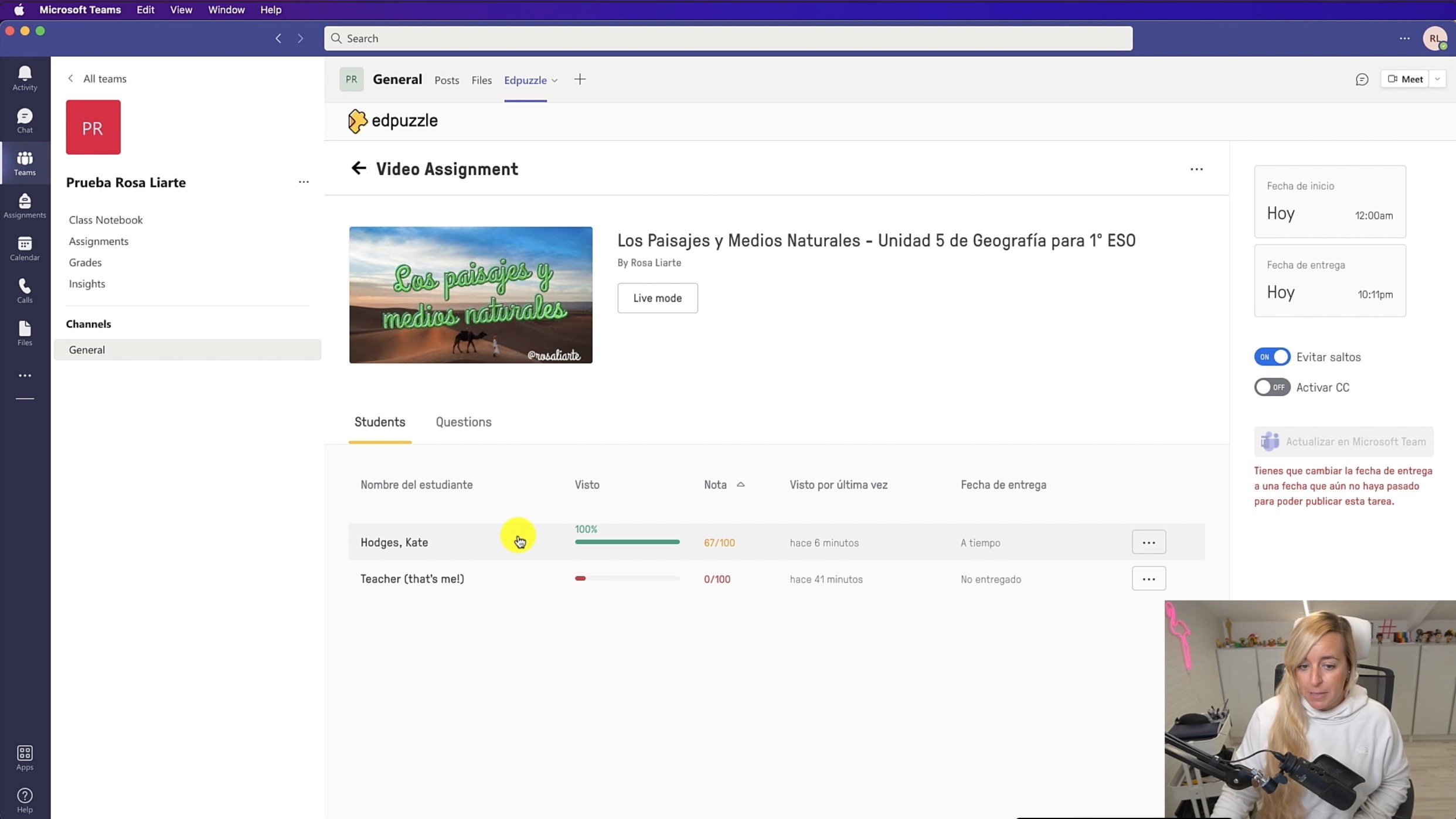 Es importante que cuando asignemos un vídeo a nuestro alumnado desde Edpuzzle para Teams, le pongamos una fecha de entrega. Esto es porque Teams hace la sincronización de la evaluación de la visualización del vídeo una vez que haya pasado esa fecha. Así que una vez pasada la fecha, tendrás las calificaciones automáticamente pasadas a Teams. Así he preparado este vídeo para que veas todas estas opciones tanto desde el punto de vista del profesorado, como desde el punto de vista del alumnado.