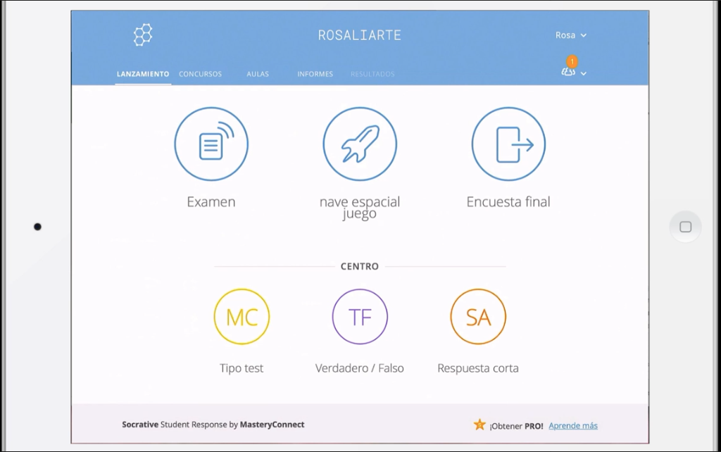 Yo me abrí una cuenta en Socrative a finales del curso pasado para empezar a probarla. Mi sorpresa fue que, con la versión gratuita sólo puedes trabajar con una clase. Cualquier compañero de Secundaria tiene unas 5, así que no sirve; debes suscribirte a la versión Pro, que no es nada barata. Yo lo comenté en mi Centro por si conseguía convencerlos para que nos apuntáramos varios y así obtener un descuento interesante pero, por ahora, no he tenido mucho éxito…