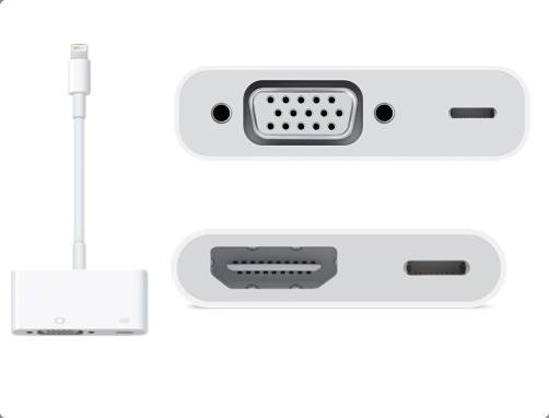 - A través de cable VGA: es el que tiene muchos pinchitos, y siempre hay que enganchar a su vez en los auriculares del iPad un cable auxiliar de sonido para que también se escuche por los altavoces en el caso que pongamos vídeos.