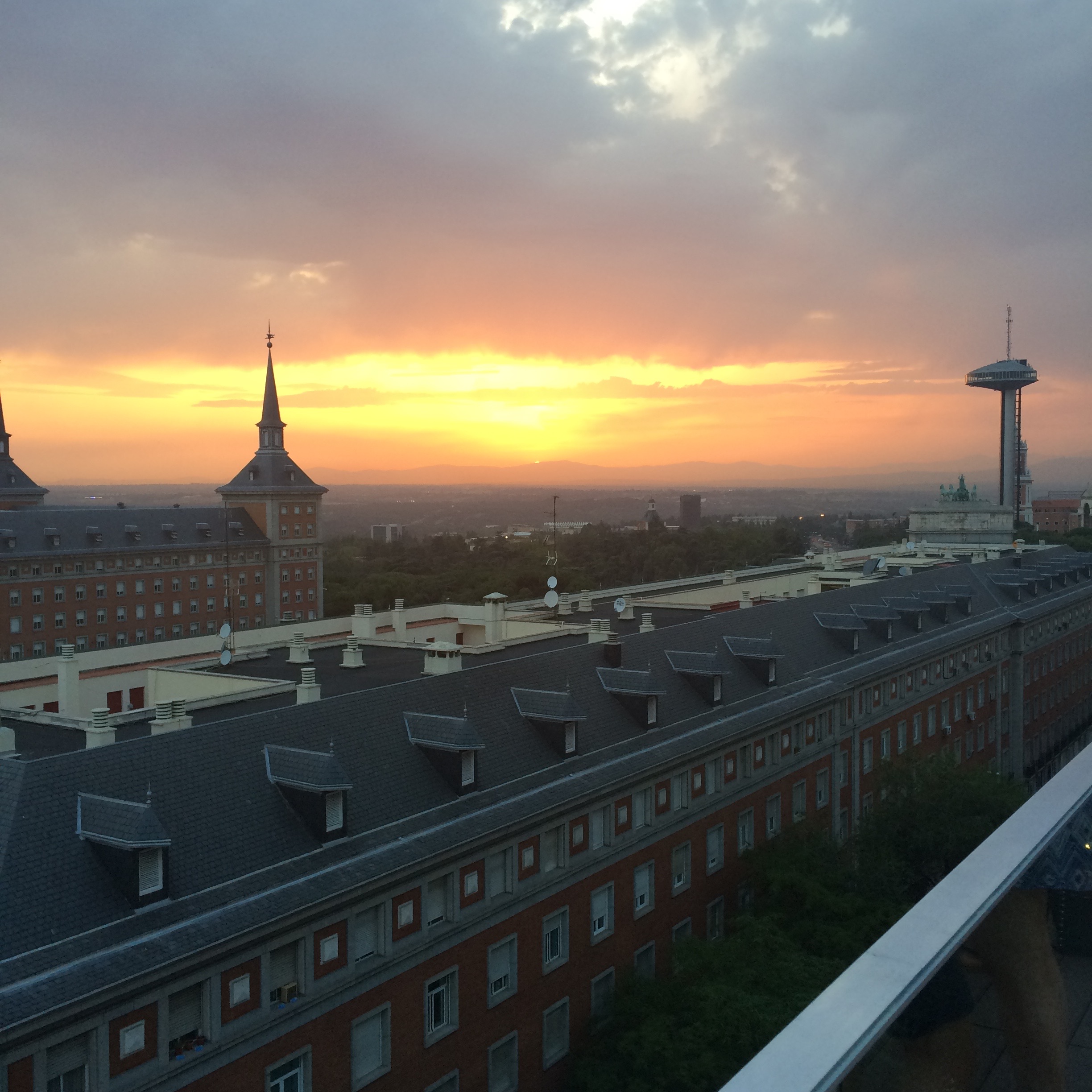 Tras ello, Encarnación y yo nos fuimos a comer por nuestra cuenta a un restaurante por la zona de Moncloa, me encantó la verdad, y compartimos la experiencia y la evolución del curso, que parece ser que iba muy bien, y esperaban otro invitado a la semana siguiente. Ahora, hace unos días me escribió un email, que el curso había tenido muy buena evaluación y la gente estaba muy contenta según la encuesta, con mi ponencia. Así que intento seguir por este camino de transmitir, compartir, e intentar mejorar en lo que pueda un poco las aulas. Muy contenta de esta experiencia, y gracias a la Universidad Complutense de Madrid por contar conmigo y darme dejarme disfrutar de estas magníficas vistas desde el hotel donde me quedé.