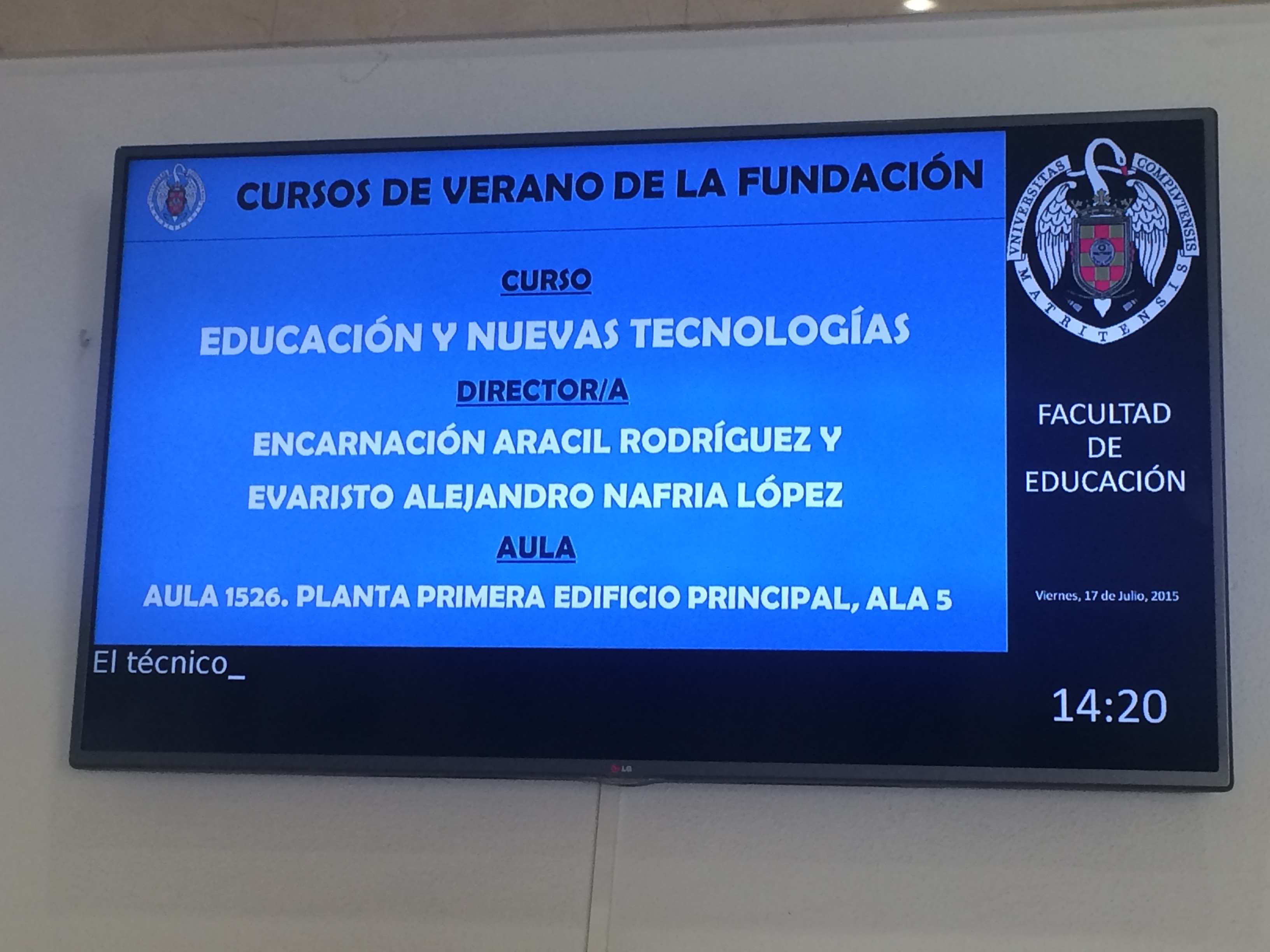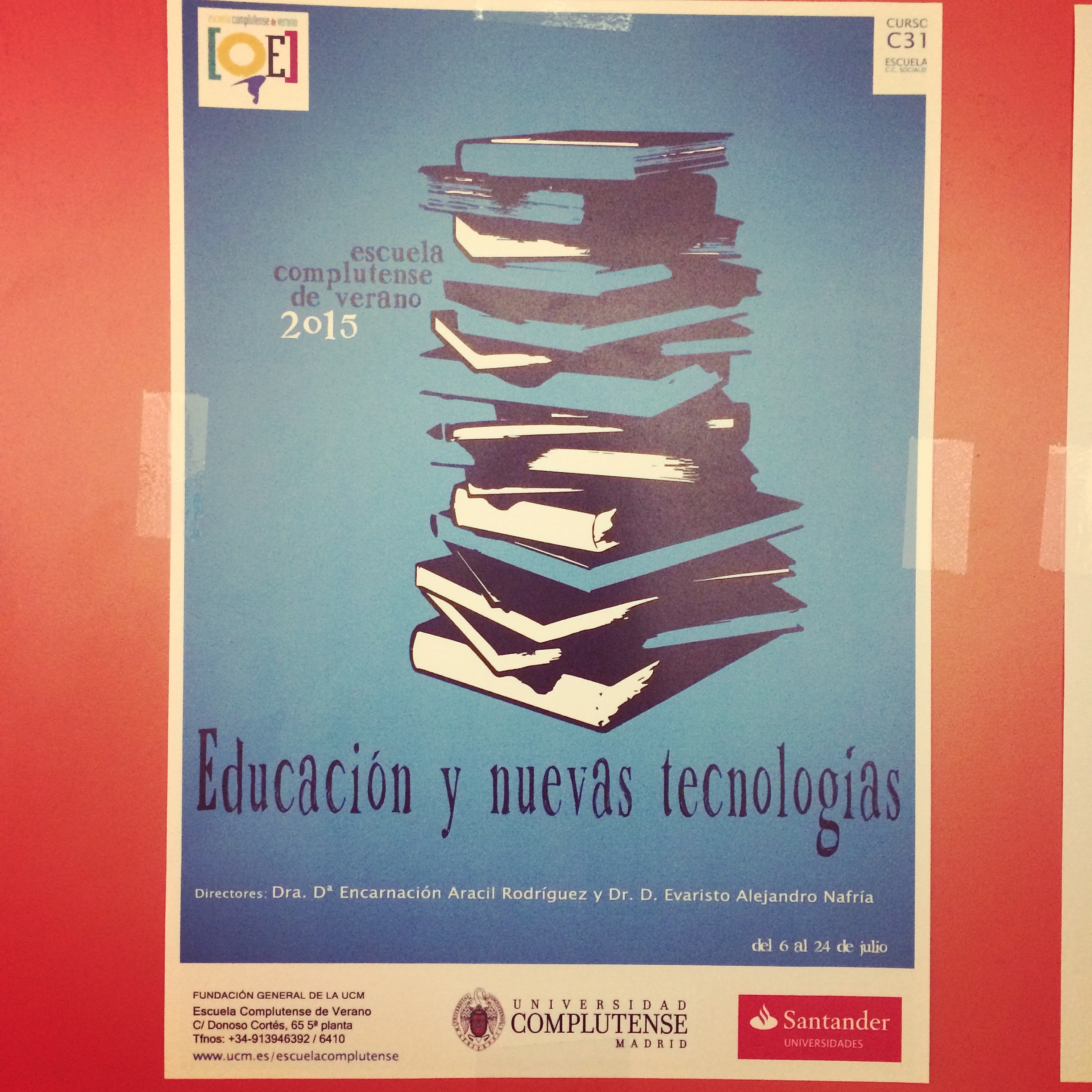 Hace un mes me contactó Encarnación Aracil, profesora de la Universidad Complutense de Madrid, quien estaba organizando un curso de la Escuela Complutense de Verano de la Universidad Complutense de Madrid, concretamente, el curso se titulaba «Educación y TIC». Encarnación había visto mi presentación de SIMO Educación, además de lo que tenía colgado en el blog, así que se puso en contacto conmigo para ver si podía participar en su curso. La propuesta de Encarnación era la siguiente: el curso duraba dos semanas, y yo iría a dar una ponencia una sesión para hablar cómo trabajo en mis clases con Apps y dispositivos móviles, concretamente con tablets. Así que me puse a tramitar permiso, ya que en julio los equipos directivos tenemos que trabajar, y llegando a un acuerdo, pude irme el 17 de julio a dar la ponencia al alumnado de la Universidad Complutense.