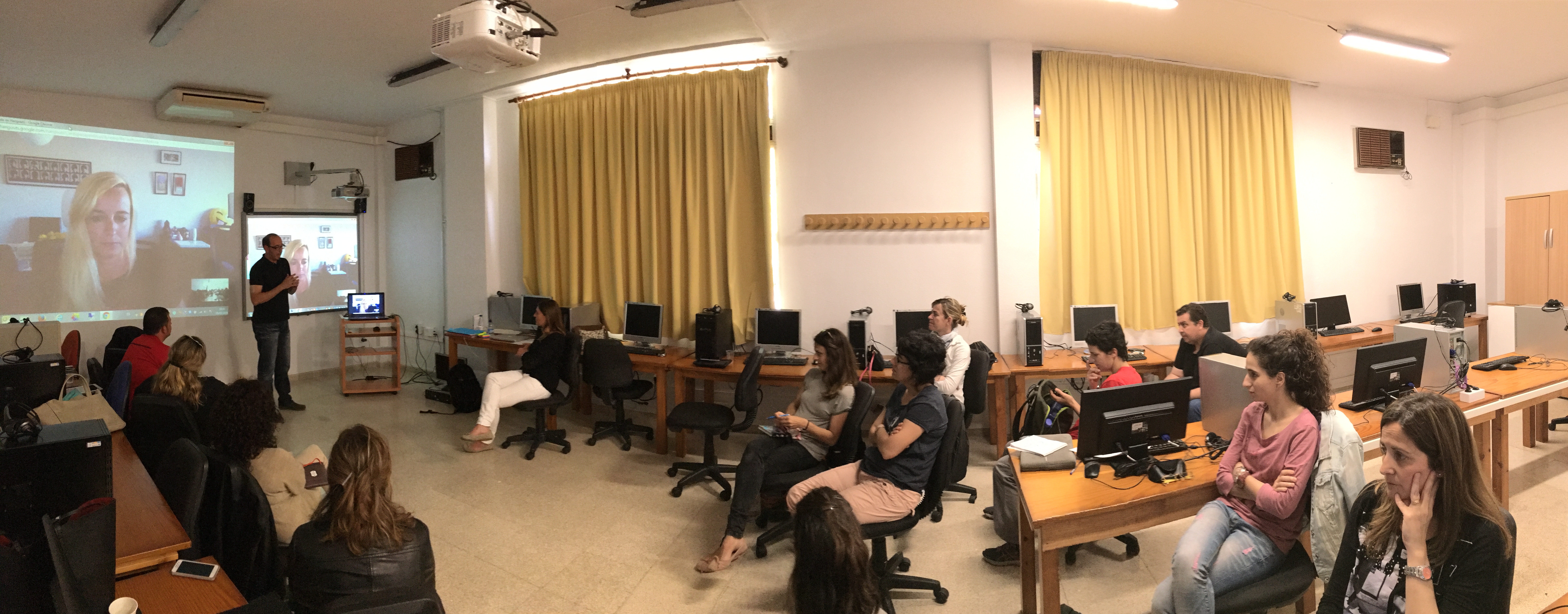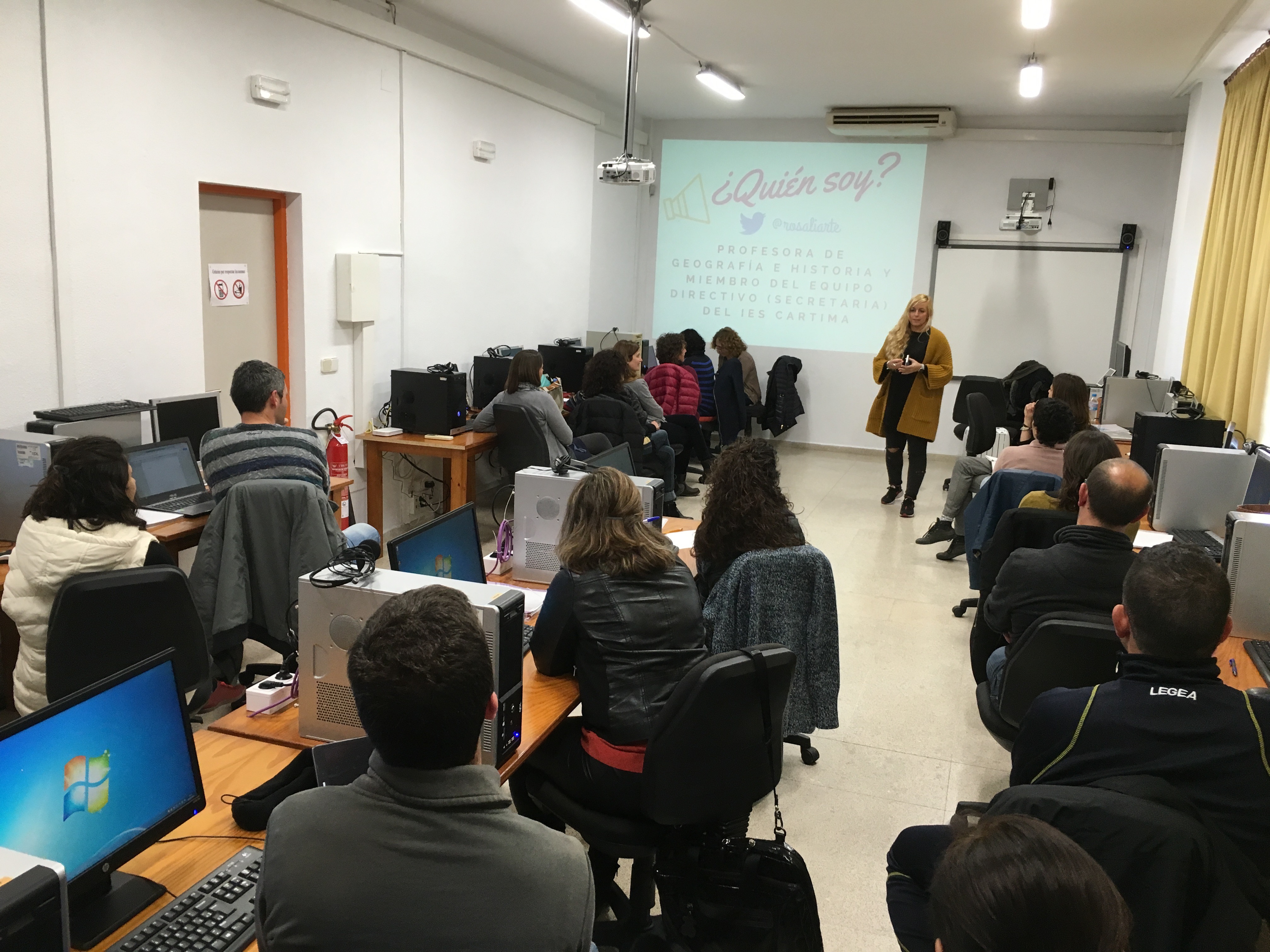 Cuando llegué al CEP de Manacor me encontré a un profesorado en el aula de informática que me recibió con muchas ganas de trabajar. Emma, todo un encanto, vino a recogerme al aeropuerto y me trató genial. Muchísimas gracias Emma, además que documentaste a tope el curso, ¡y esas cosas me encantan!
