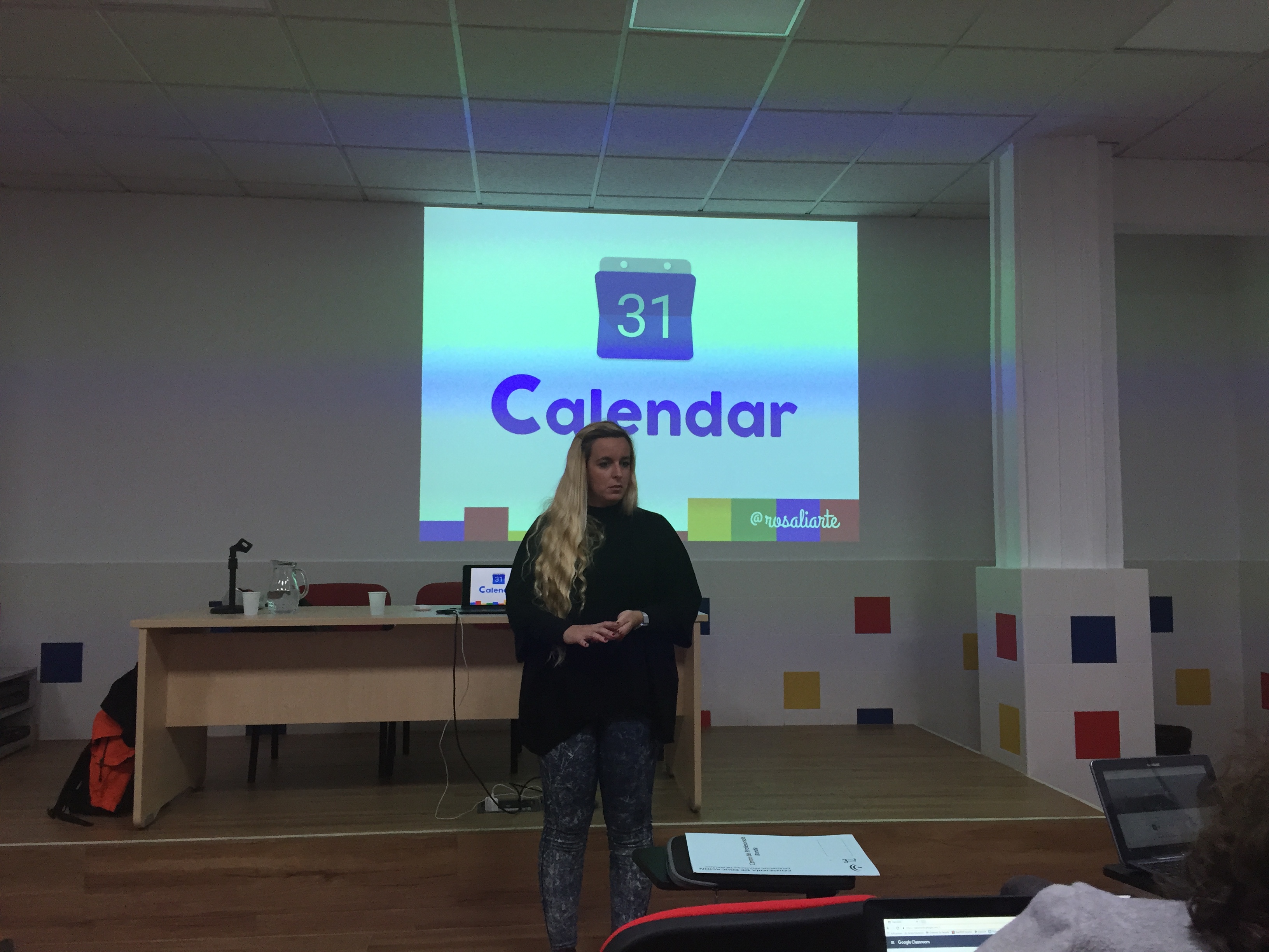 Acompañé al profesorado en esta sesión en el uso de Google Calendar, y cómo se puede sacar el máximo partido a esta herramienta. Gestionar el tiempo con los calendarios integrados, trabajar de forma eficaz y en equipo con calendarios compartidos, realizar seguimientos de los eventos más importantes, compartir tu agenda o crear varios calendarios, están entre las opciones que conocimos de Google Calendar en esta sesión, con ejemplos prácticos para llevarlo al aula.