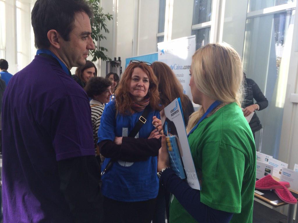 El jueves comenzaba la jornada, con una gran organización, en el edificio Telefónica de Barcelona, nada más entrar con tu entrada, ya te hacían soltar todo, y tener que encestar una pelota en la canasta para poder pasar coger tu pase y bolsa con cositas de regalo. Esto apuntaba a que la cosa iba a ser diferente. Y así era, ya en la bolsa tenía una camiseta verde, con la letra I, que me insistían en que me tenía que poner y así hice.