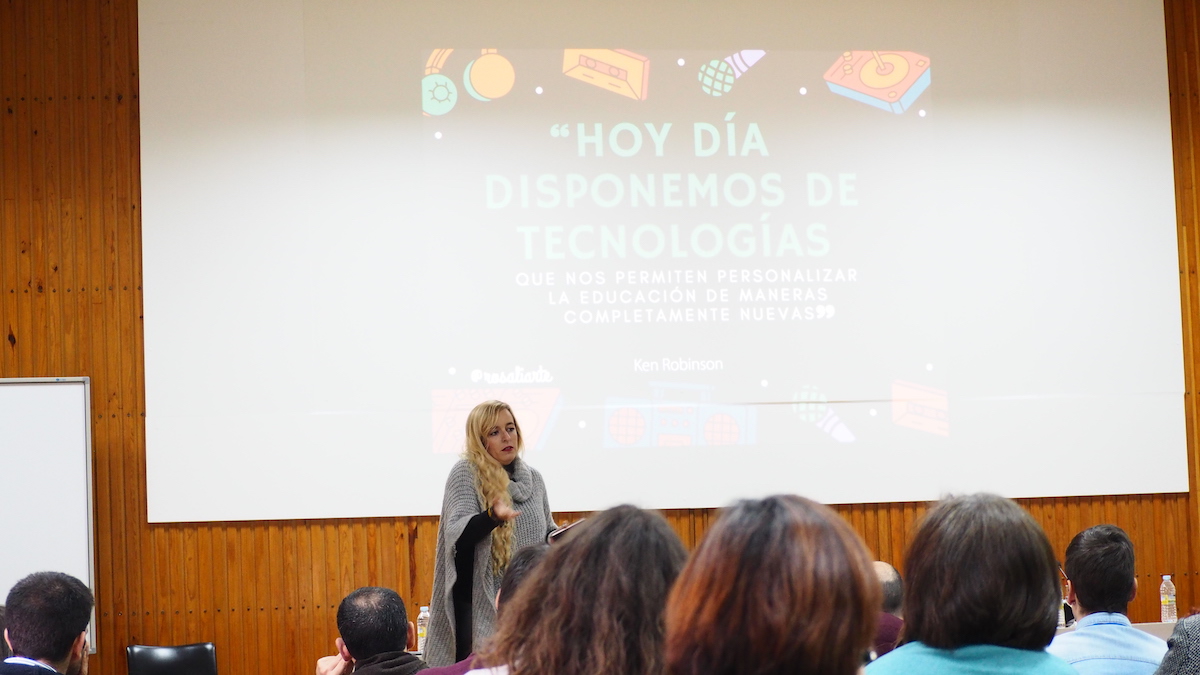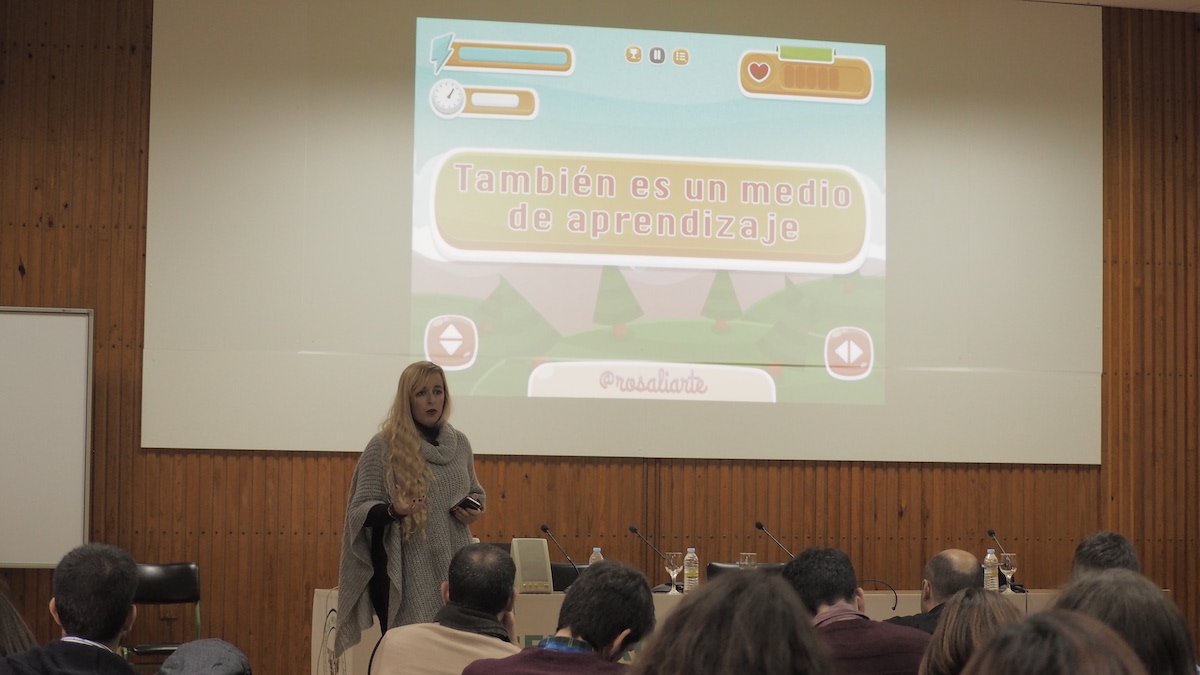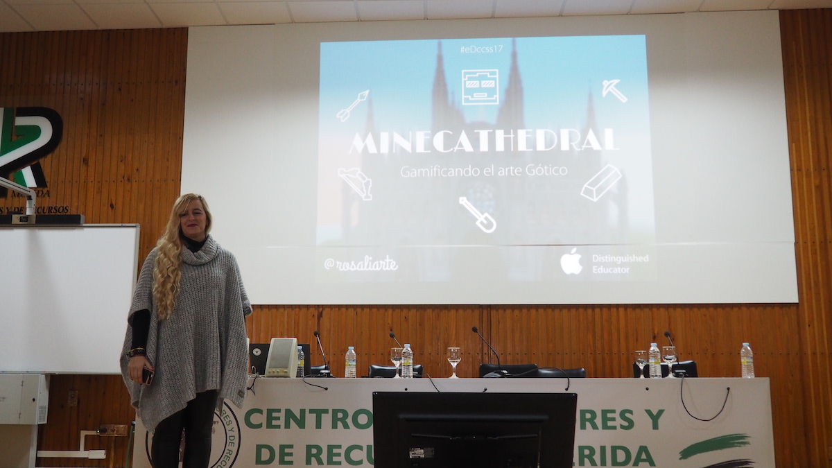 Para esta ocasión preparé una introducción diferente en mi presentación, en la que reflexioné acerca del profesorado y cómo, gracias a nuestro papel, conseguimos que se den las condiciones óptimas del aprendizaje de nuestro alumnado. Mostré la experiencia de usar Minecraft en clase, y a su vez, las vidrieras góticas que hicimos decorando la entrada de todo el IES Cartima. Mostrar el potencial de la gamificación en el aula y cómo un videojuego puede enseñar en clase, y a su vez, mostrar que también se pueden hacer proyectos de historia del arte, la gran olvidada en las Ciencias Sociales.