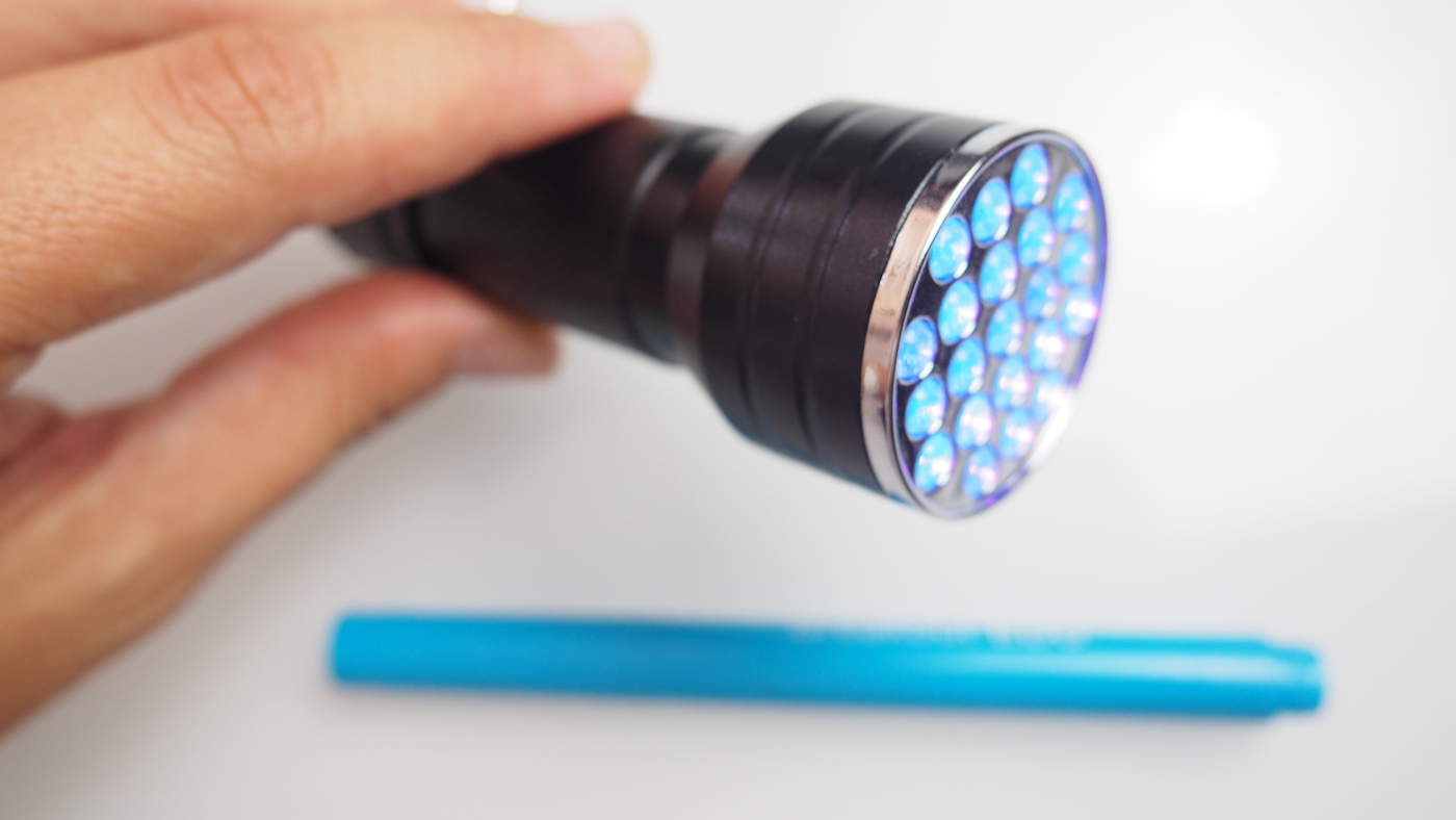 - Si dentro de las pruebas quieres poner un papel con tinta mágica, tienes que pillar el rotulador ultra violeta. Sí, se trata del rotulador de los billetes falsos, que nos viene genial para estas pruebas. Si lo utilizas, necesitas una linterna con la que poder encontrar las pruebas escritas en el papel. He encontrado esta linterna ultravioleta en Amazon que también pueden servirte.