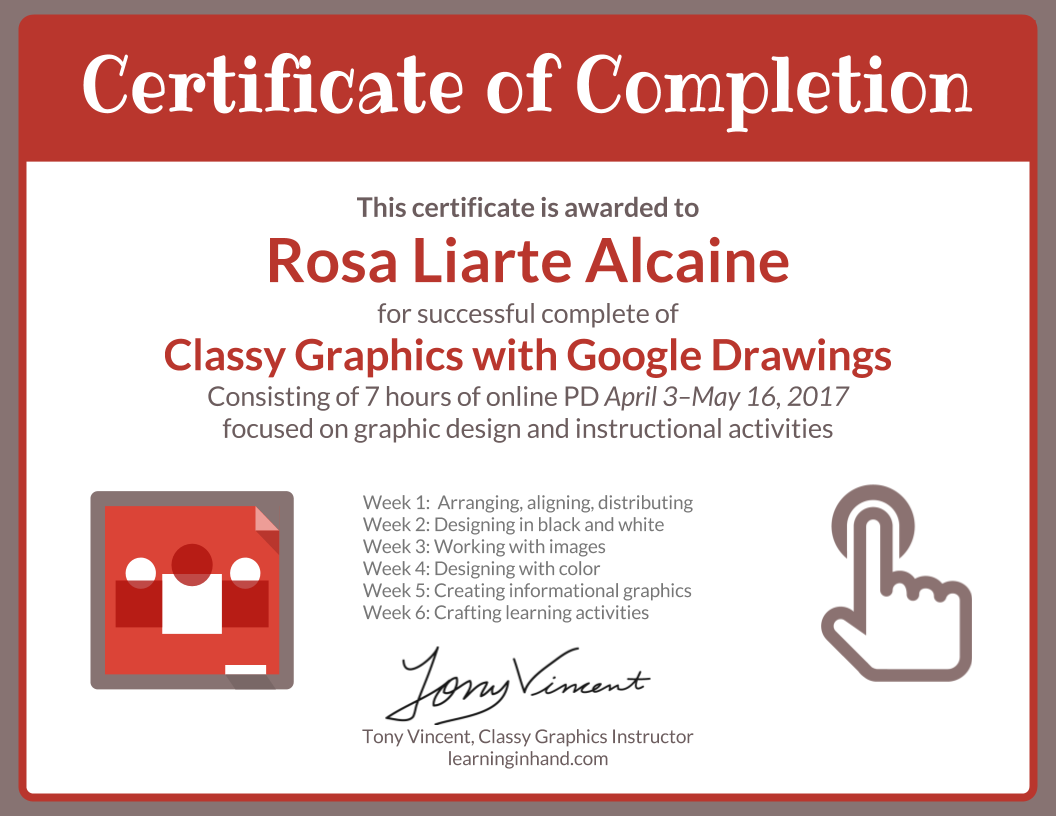 He tenido la gran oportunidad de hacer un curso online con Tony Vincent los pasados meses de abril y mayo, el curso se llama #ClassyGraphics, donde puedes aprender a sacarle más partido a las herramientas de Google y a realizar diseños muy originales, debido a la buena aceptación Tony Vincent va a impartir de nuevo el curso este verano, por si quieres apuntarte, eso sí, está todo en inglés.