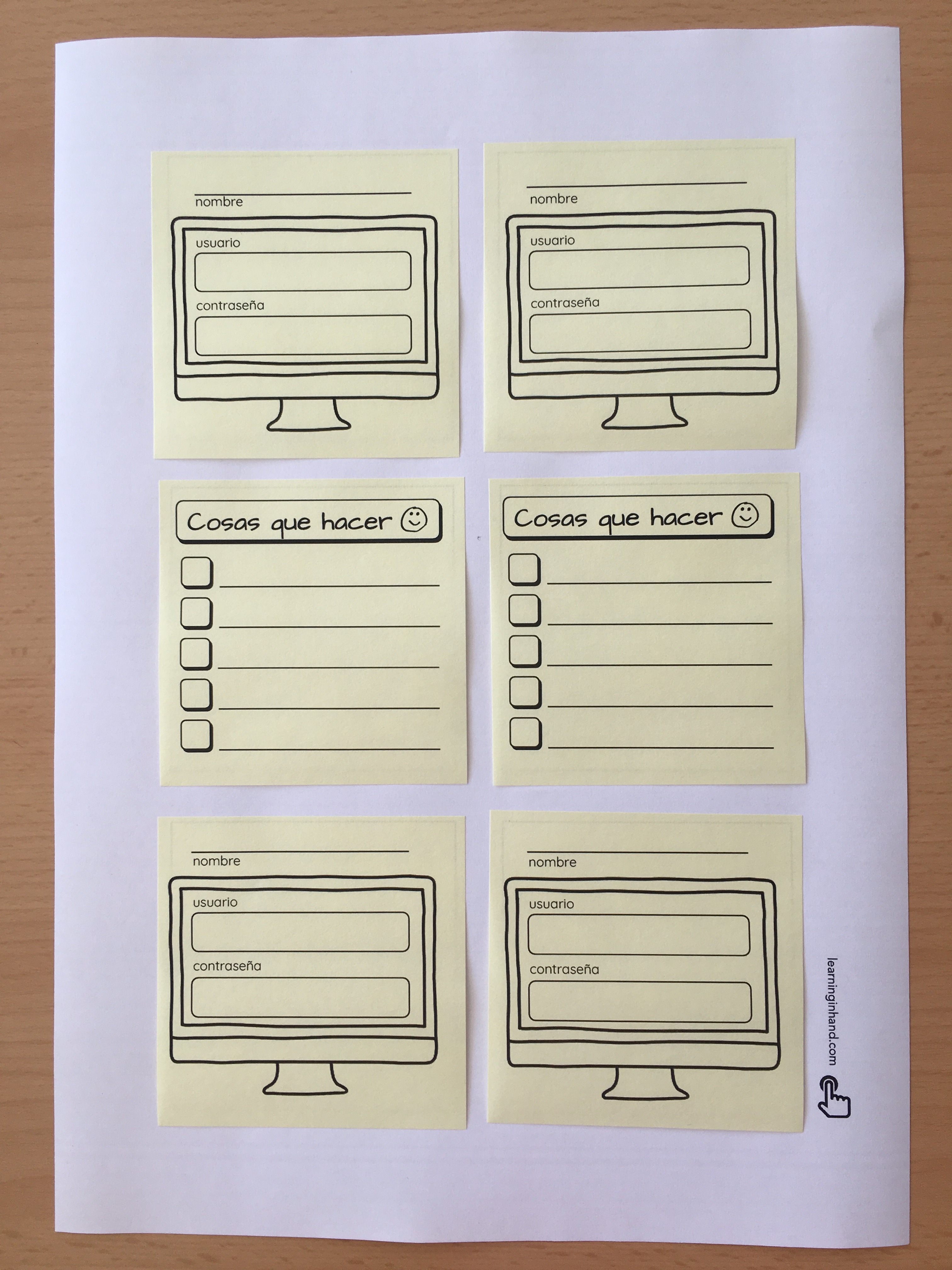También diseñé otros post-it con listas de tareas a realizar, o por ejemplo para que guarden su usuario y contraseña momentáneo de Google Suite para que después cambien la contraseña y no olviden el primer inicio de sesión cuando les creo la cuenta, también diseñé otros de tweets para colgar en el mural de clase o el #postitpositivodeldía.