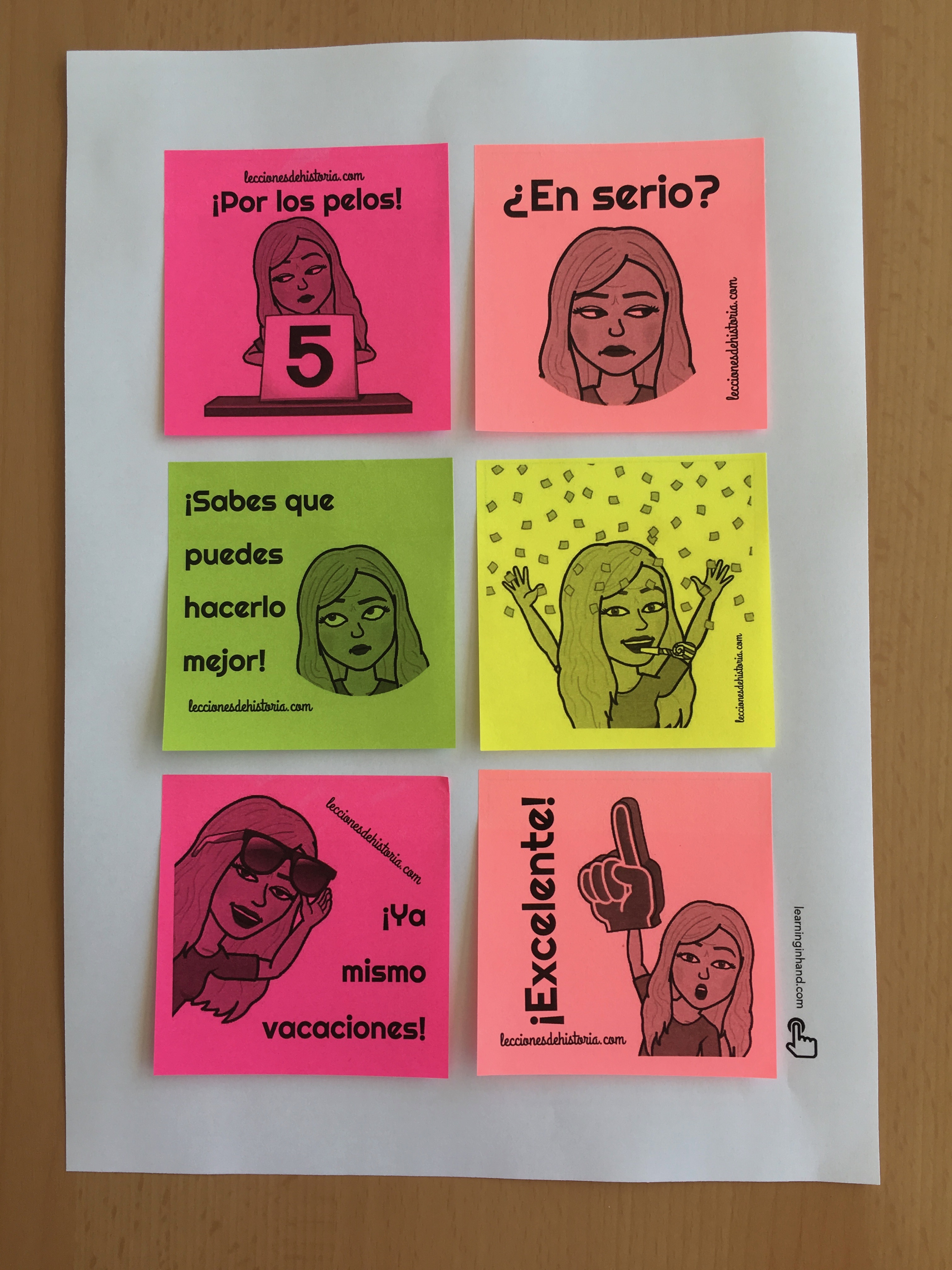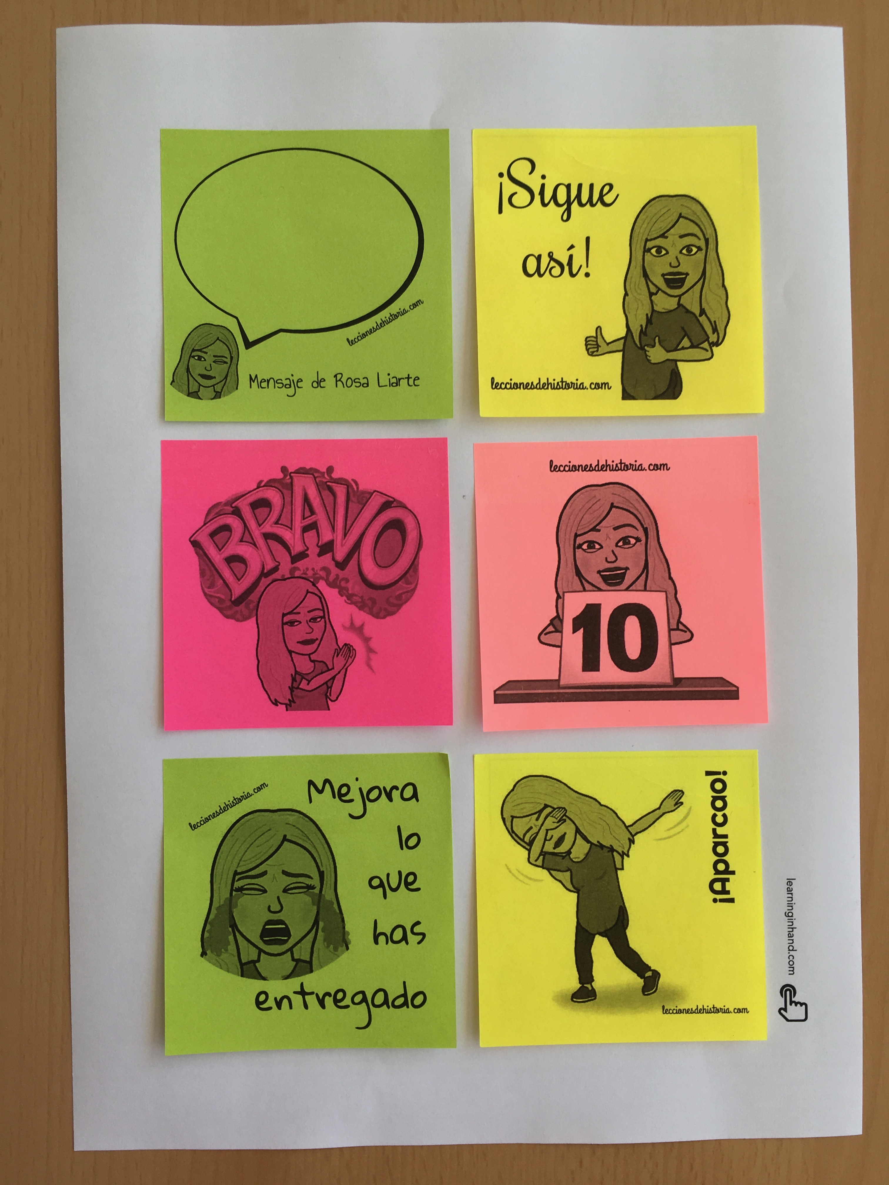 Comencé a realizar mis propios diseños, entre ellos con bitmoji y los típicos mensajes que le doy a mi alumnado cuando les corrijo la libreta o mis típicas frases que les digo y ellos se ríen mucho conmigo.