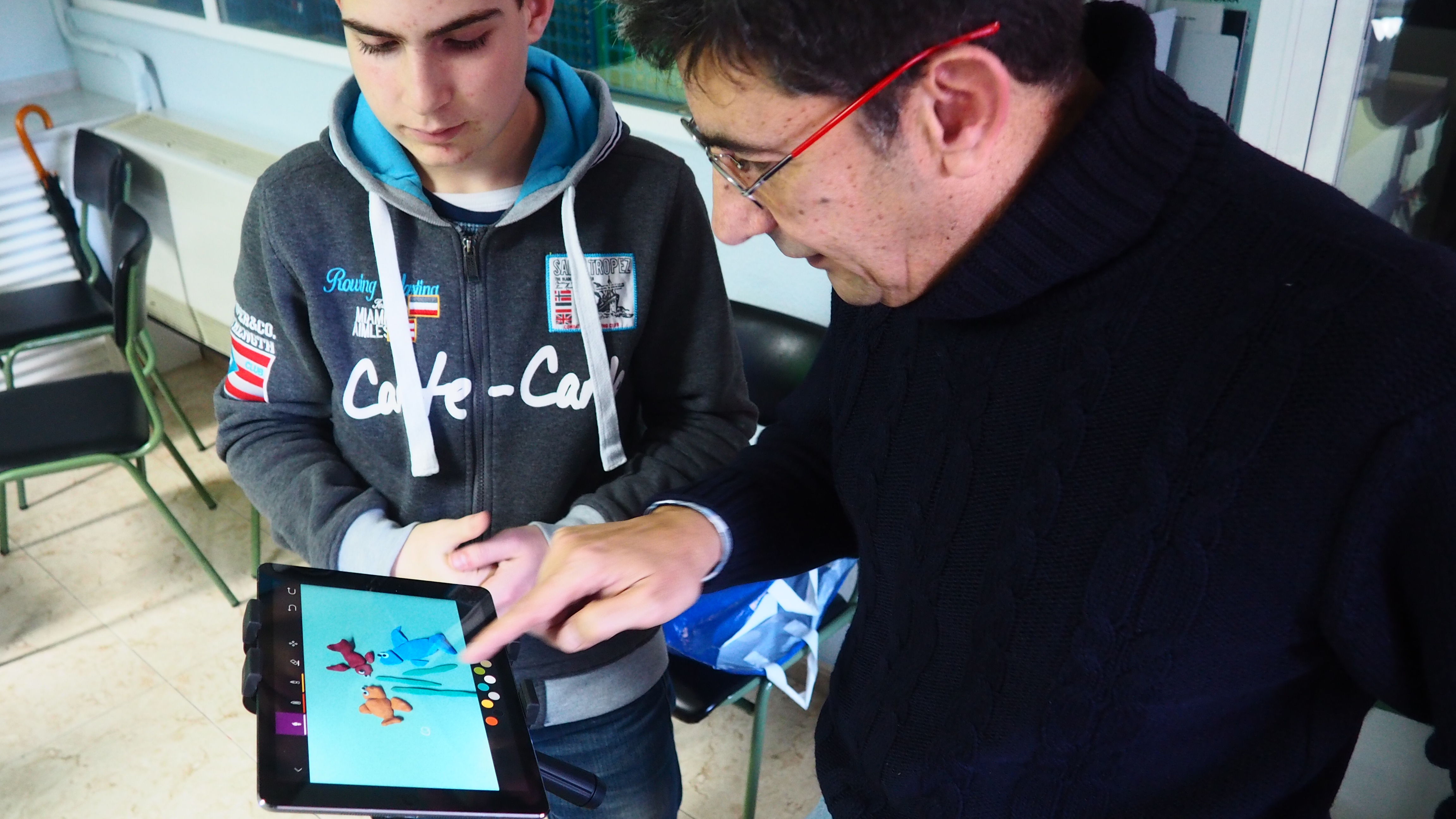 En el caso del IES Victoria Kent me acompañó mi alumna Leire Jiménez, quien se preparó una presentación genial de Book Creator y luego nos pusimos las dos a explicar Touchcast y resolvimos todas las dudas al profesorado. En el caso del curso de Stopmotion me acompañó mi alumno Ernesto Soler, quien se preparó una presentación de la App Stopmotion y ayudó al profesorado con la técnica. Finalmente en el curso de tablets del CEP de Málaga me acompañaron mis alumnos José García y María José Agüera, quienes enseñaron Touchcast al profesorado y demostraron el potencial del Chroma Key en el aula.