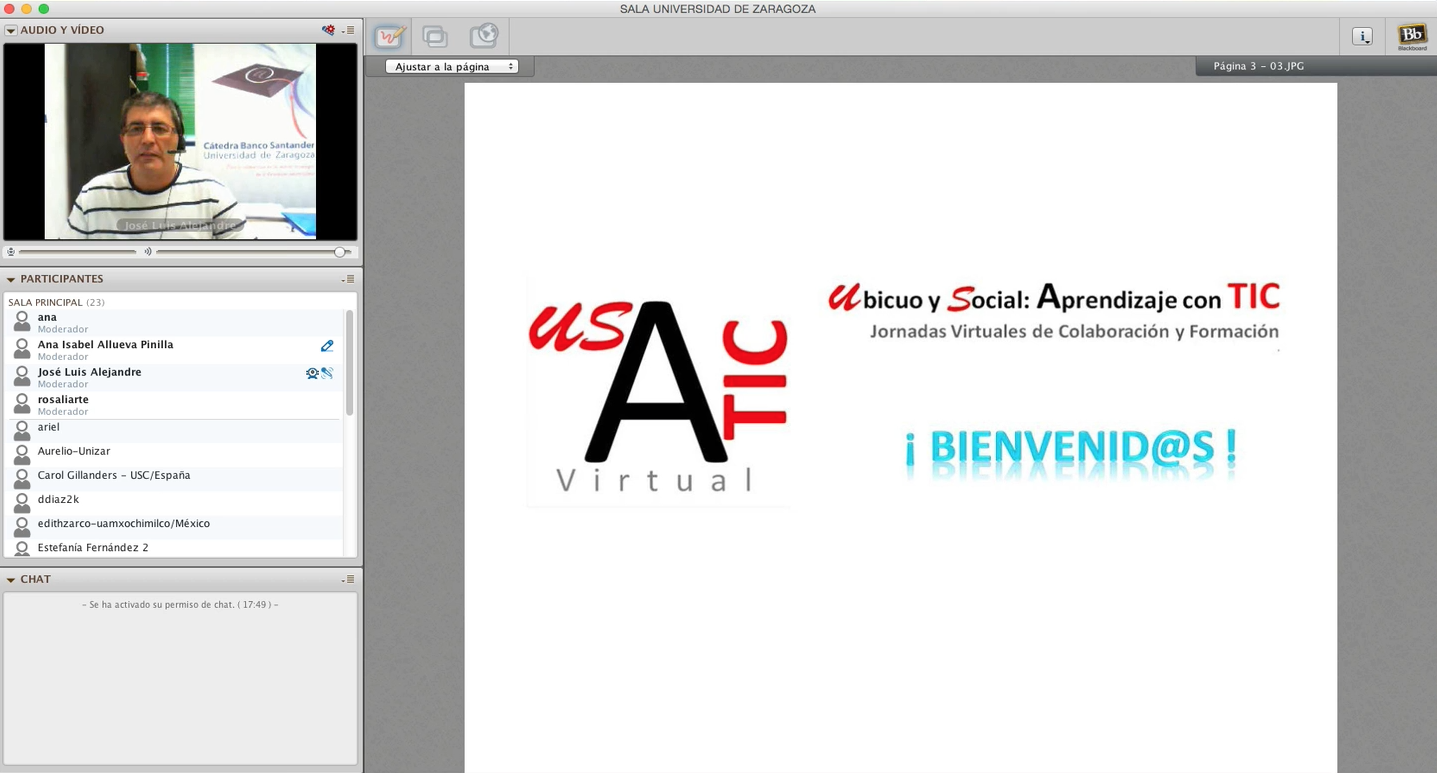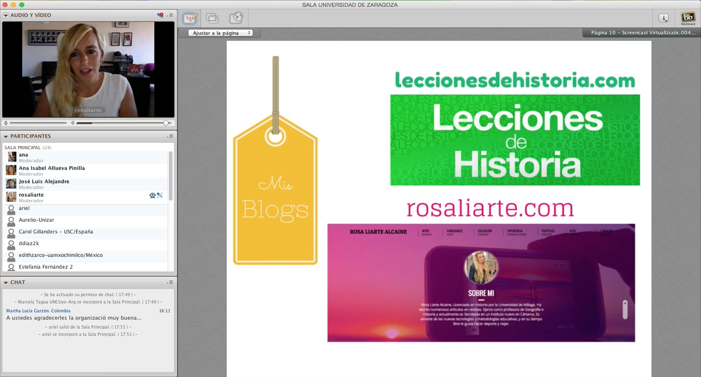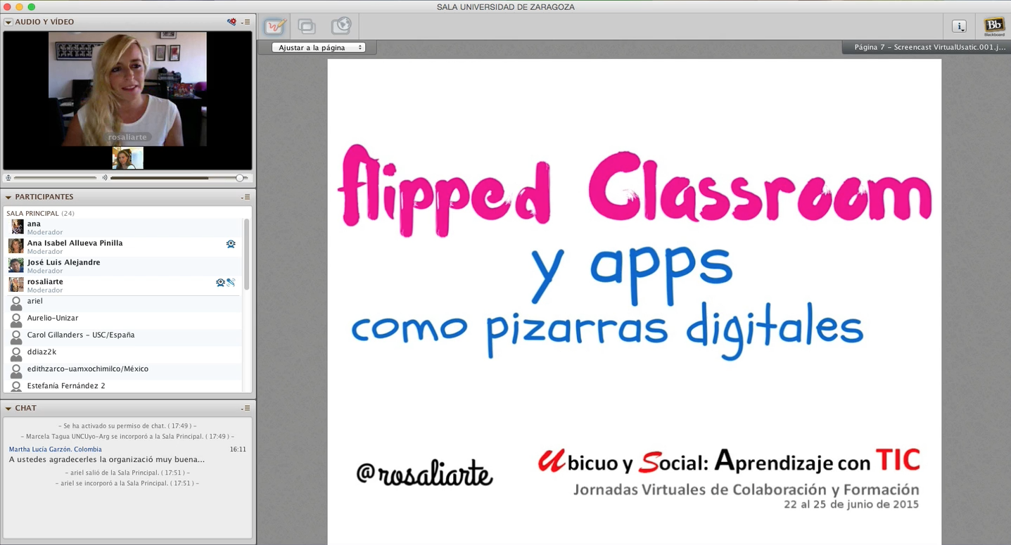 Las Jornadas fueron totalmente gratis si no querías optar a certificación, y se hacía todo a través de la plataforma CourseSites y la webconferencia a través de BlackBoard. Tras probar con Ana mi ponencia unos días antes, ¡qué paciencia ha tenido conmigo!, ya que me daba problemas la plataforma con mi Mac, pero al final salió todo bien y estaba todo preparado para la Jornada.