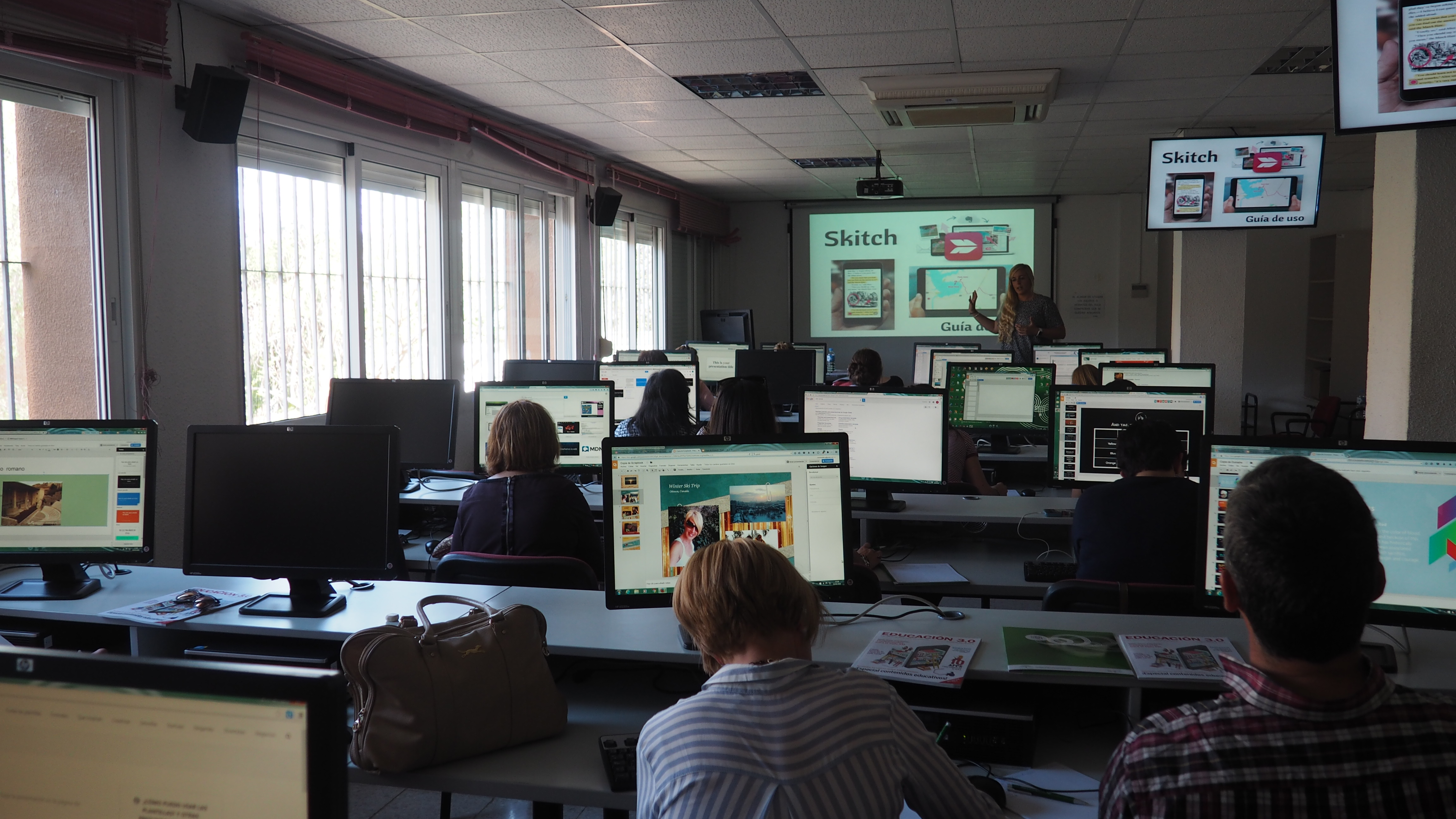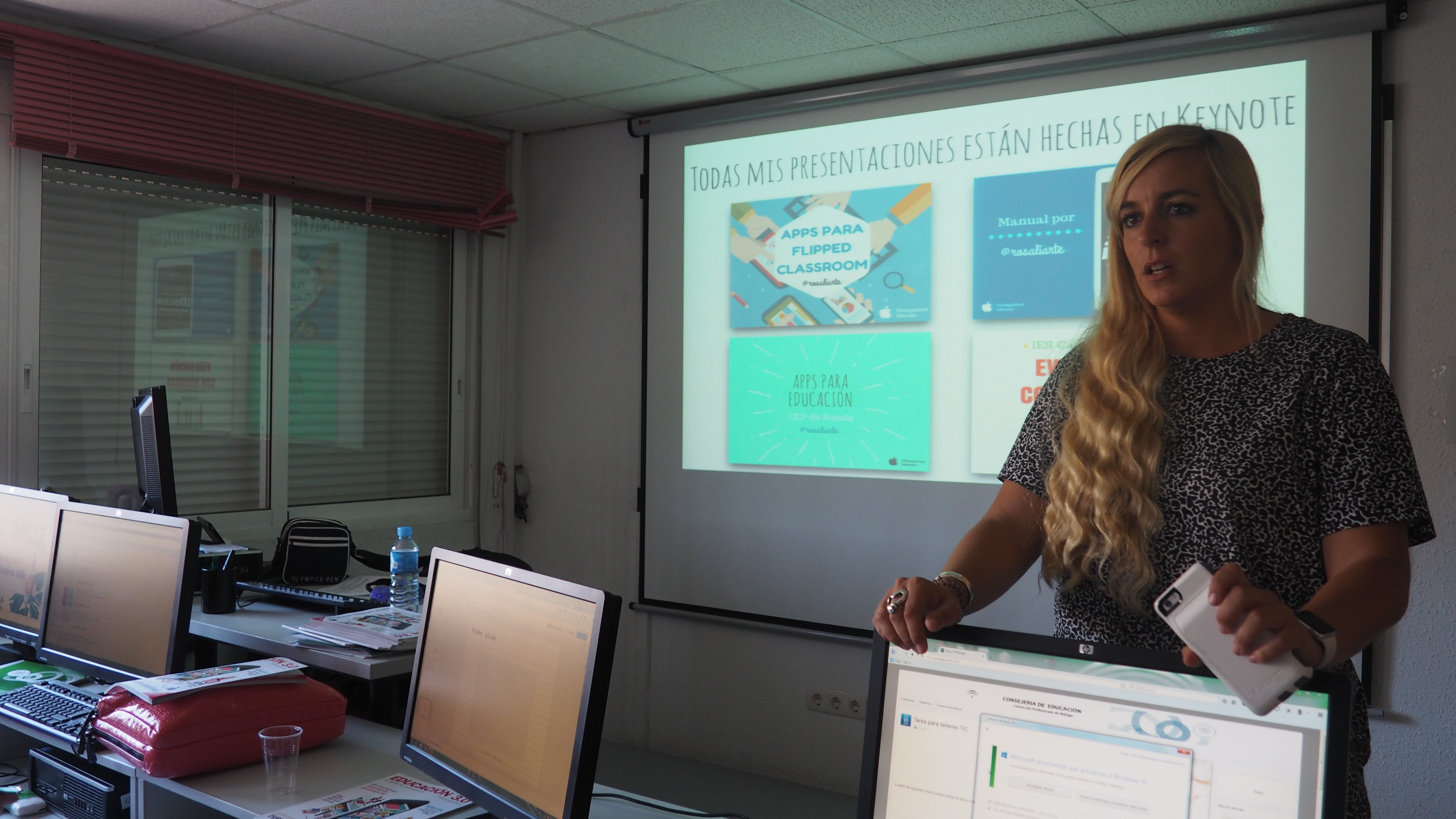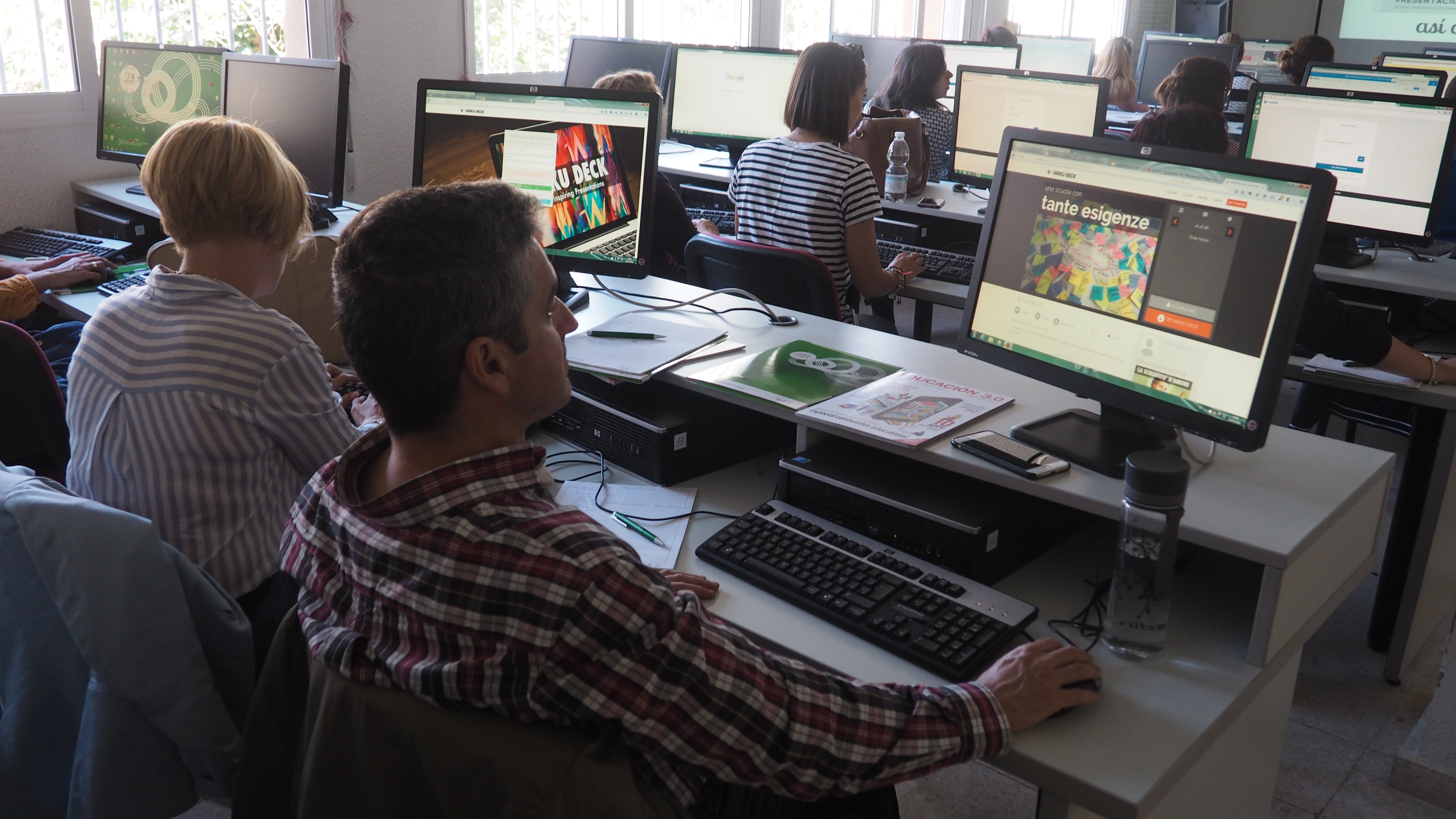 El día elegido para la formación de Presentaciones en el CEP de Málaga fue el pasado 3 de mayo, donde tuve la oportunidad de compartir al profesorado que asistió, en el aula de informática, otra forma de hacer presentaciones y sacarle el máximo partido con el alumnado. En mi caso comencé recomendando las plantillas de Google y la web Slides Carnival para que obtuvieran más plantillas aún, material que les permitirá sacar un mayor provecho para sus presentaciones.