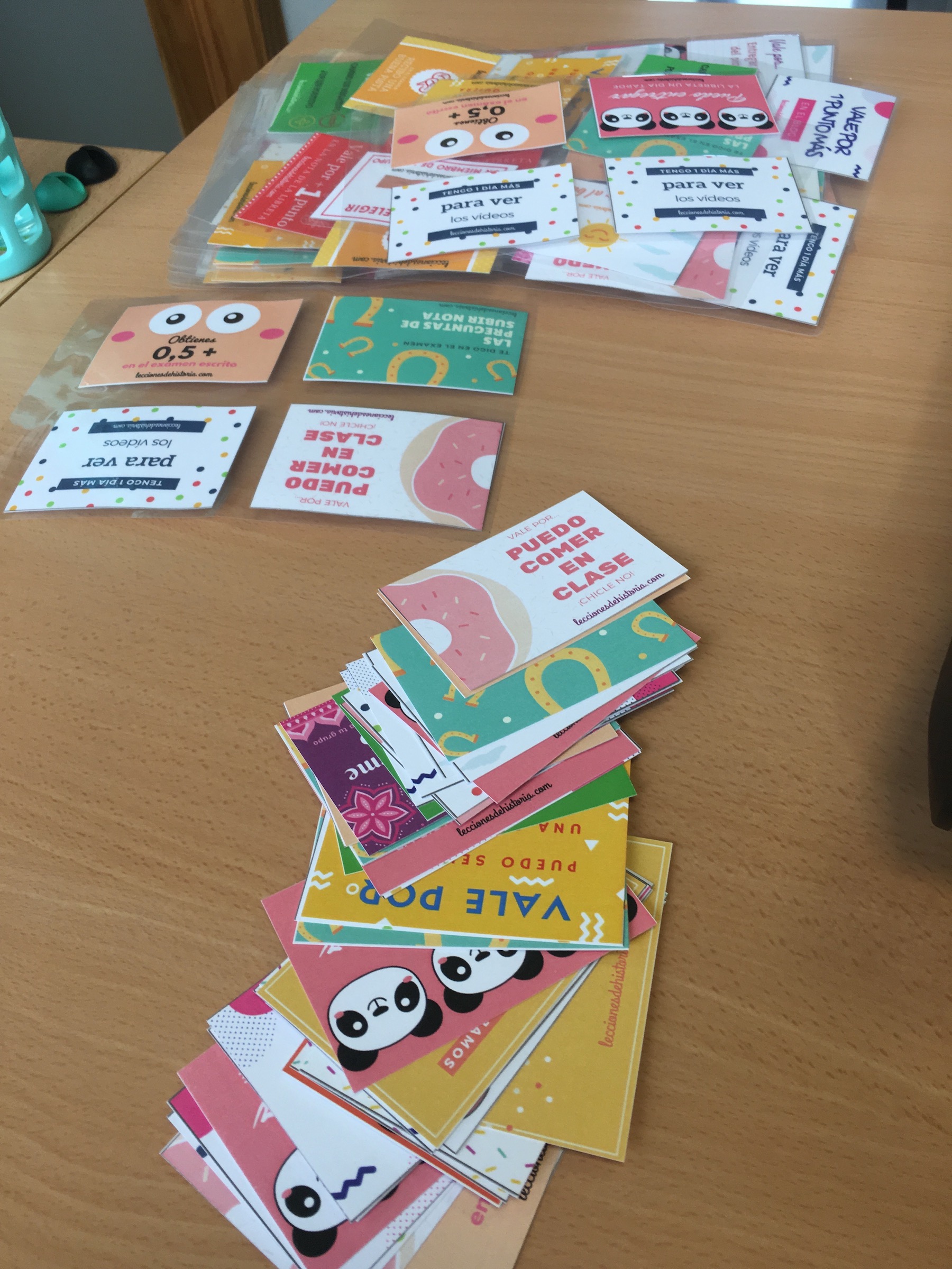 Esto hizo que, de pronto, un día nos encontraremos sin tarjetas. Todo el alumnado las conseguía por sus buenas notas y teníamos que entregar más tarjetas y no nos quedaban. El alumnado nos las devuelven, pero llegamos a un punto en el que no nos quedaban para dar más en ninguno de los cursos.
