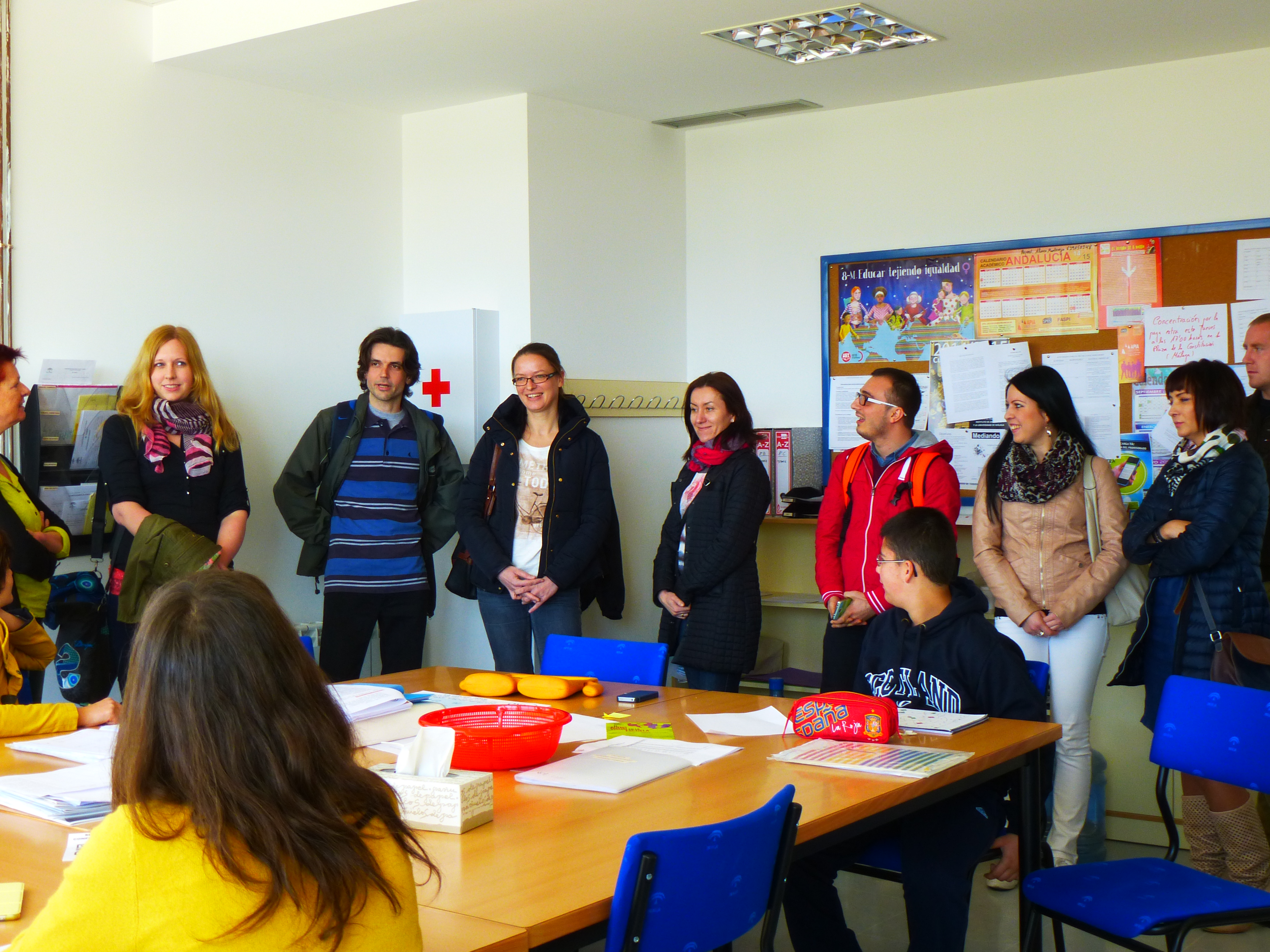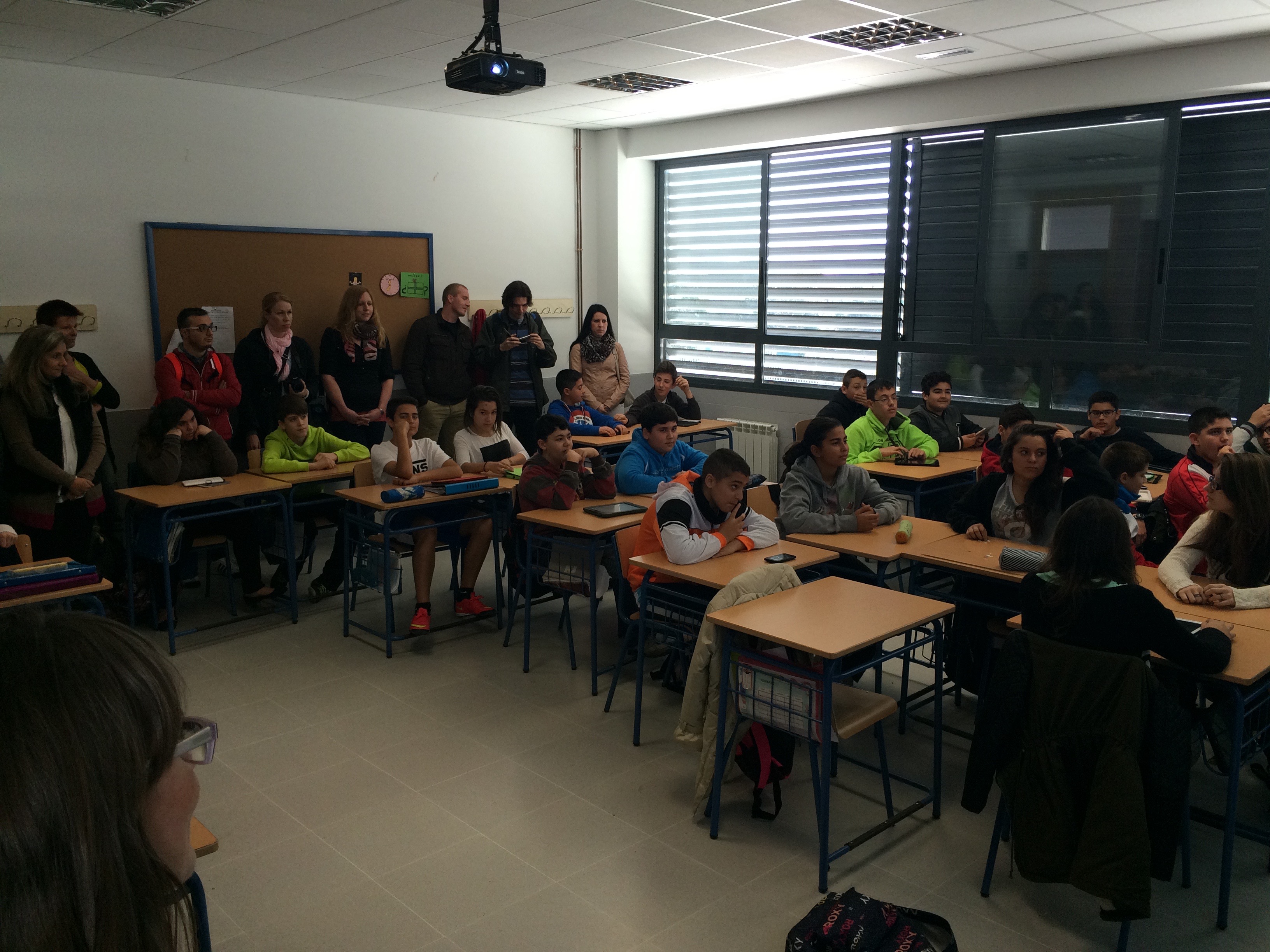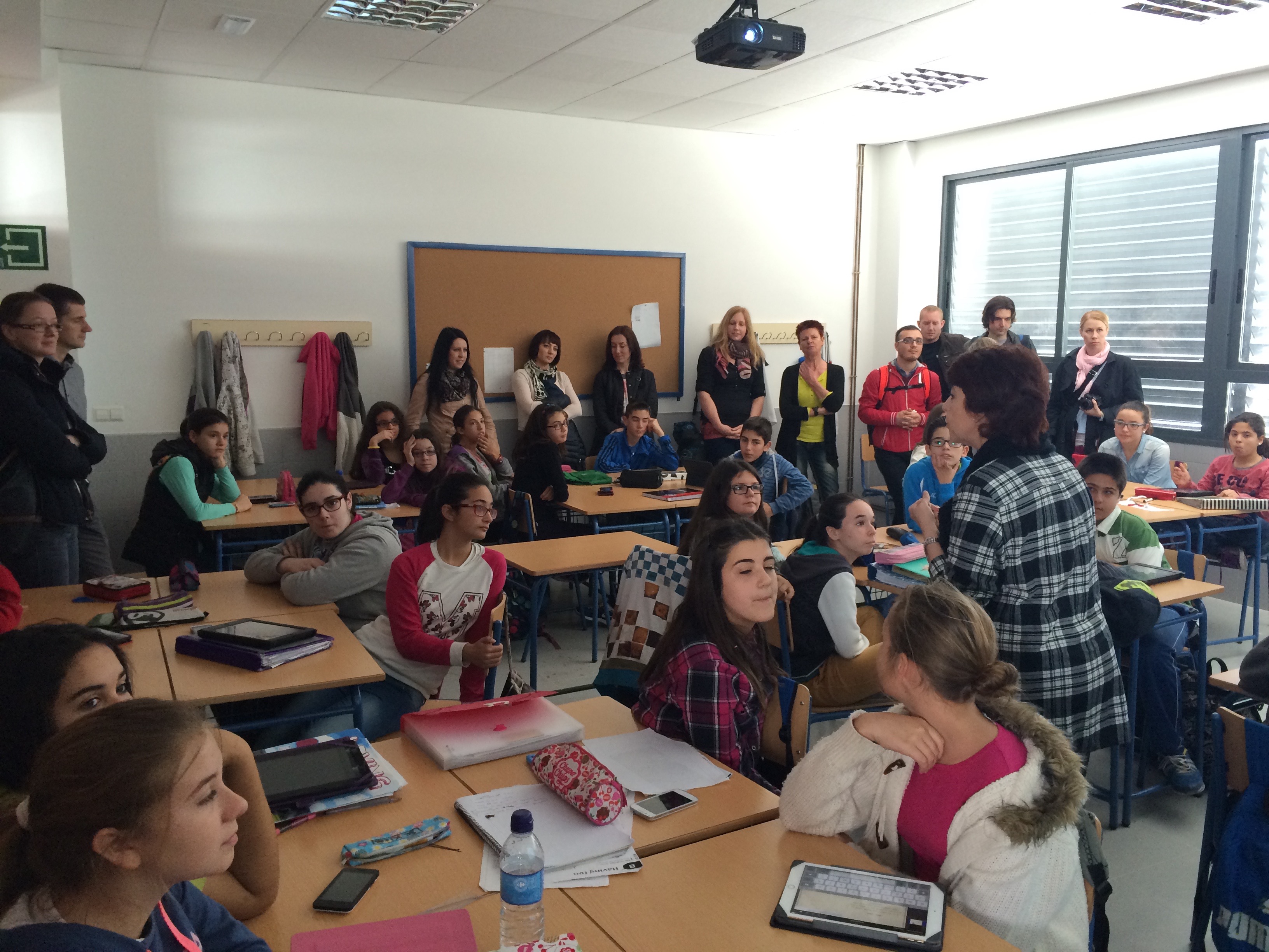 La visita la verdad que fue genial, tras la recepción de José María y Aurora del profesorado, pasamos a ver las aulas, el propio profesorado se presentó al alumnado, y pusieron en práctica sus conocimientos de Geografía, tratando de averiguar tras describir su país, de dónde procedía el profesorado. El alumnado se lo pasó muy bien recibiéndolos, y yo pude comprobar también que habíamos hecho buen trabajo en geografía durante el curso jajaja.