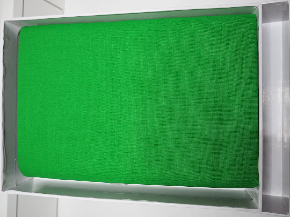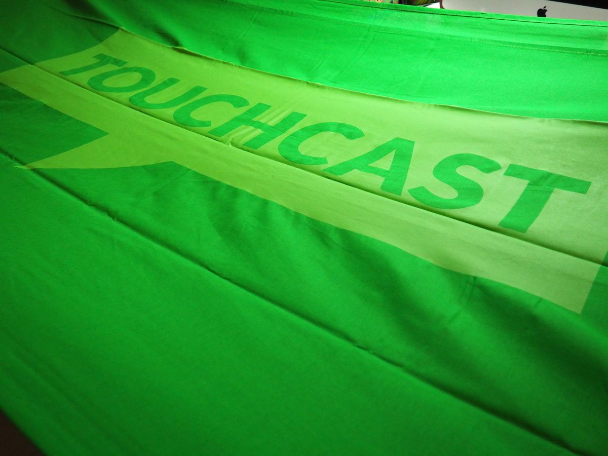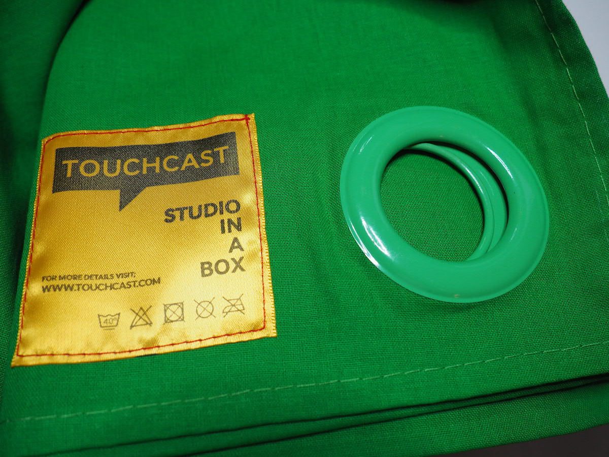 La verdad que el kit está genial, la tela es muy grande, no la he medido, pero es más grande de lo que me esperaba, aproximadamente puede tener 2 por 3 metros. Además trae el logo de Touchcast y cuando pruebas el Chroma Key no detecta el logo, así que funciona genial.